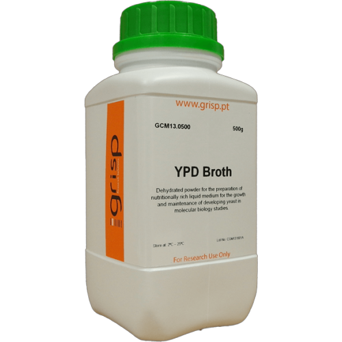 YPD Broth is a dehydrated powder for the preparation of nutritionally rich liquid medium for the growth and maintenance of developing yeast in molecular biology studies. This includes the cultivation of (recombinant) Saccharomyces cerevisiae and Pichia pastoris. YPD Broth contains glucose (dextrose), which favors the growth of yeast. Peptone and Yeast Extract are the sources for nitrogen, vitamins, minerals, and amino acids essential for growth.